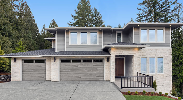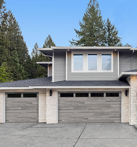 The Amarr Northwoods collection is a modern plank design garage door with a multi-hued, digitally printed woodgrain pattern that has a genuine wood appearance.